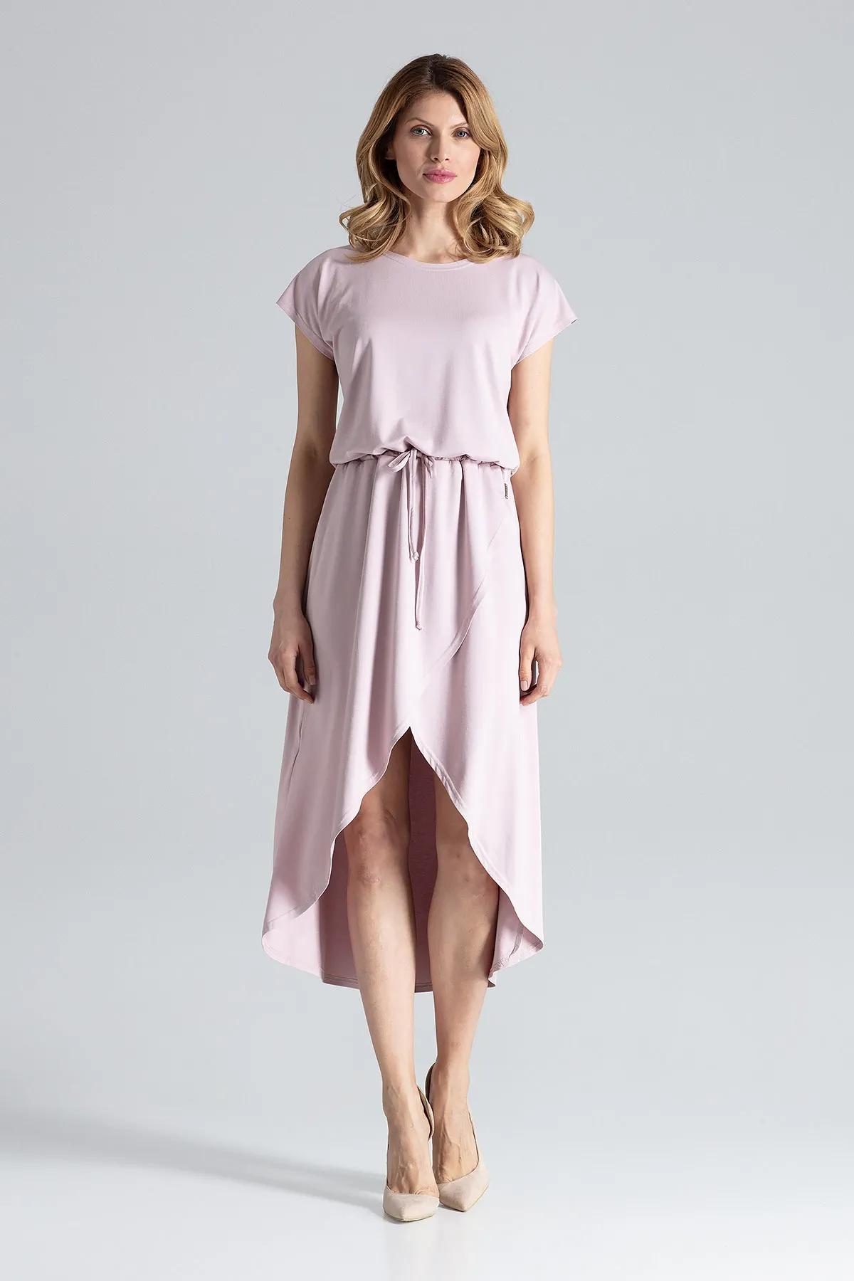 Różowa Ciekawa Sukienka z Wiązanymi Troczkami w Pasie