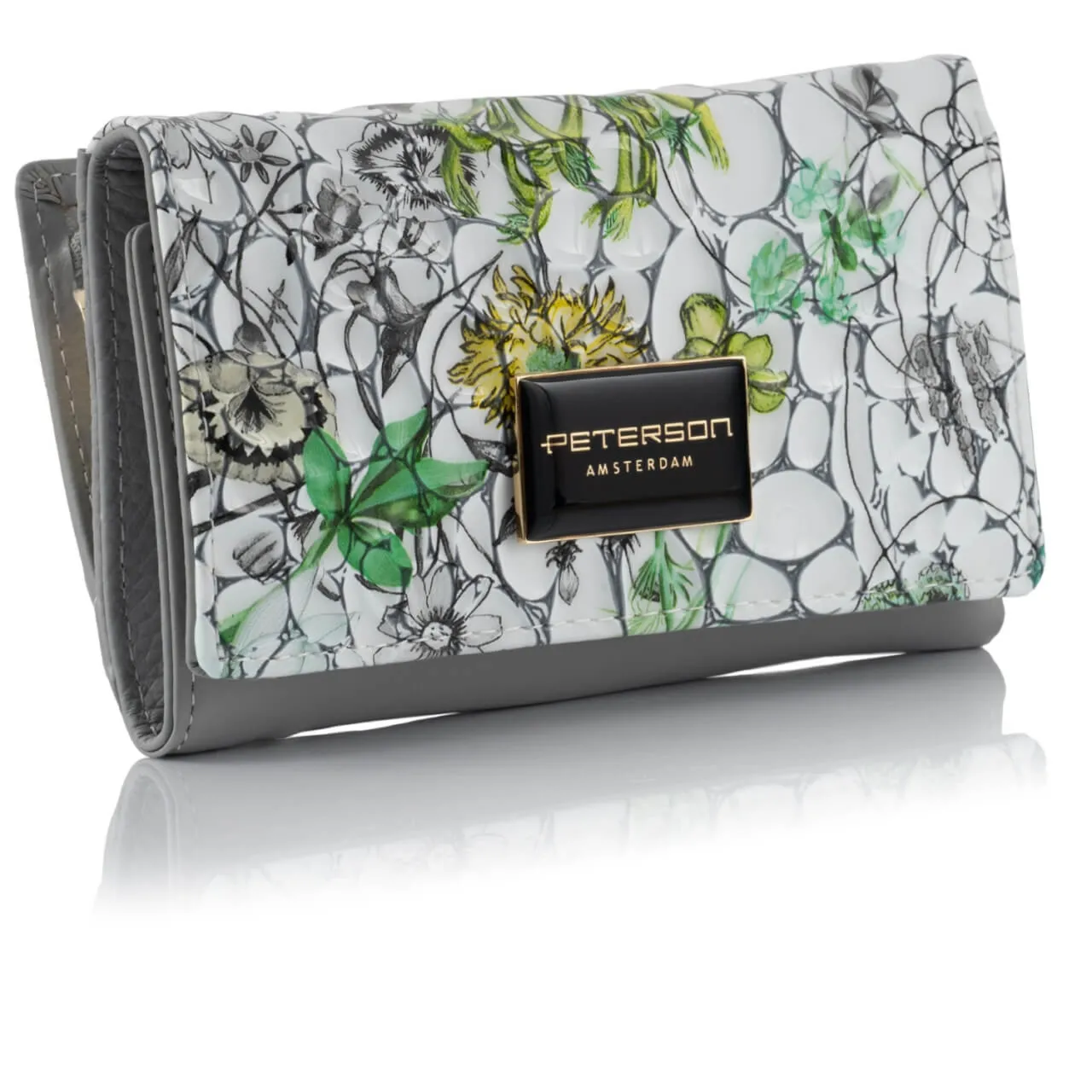 Nieduży portfel damski malowany w kwiaty PETERSON PH29 - zielony