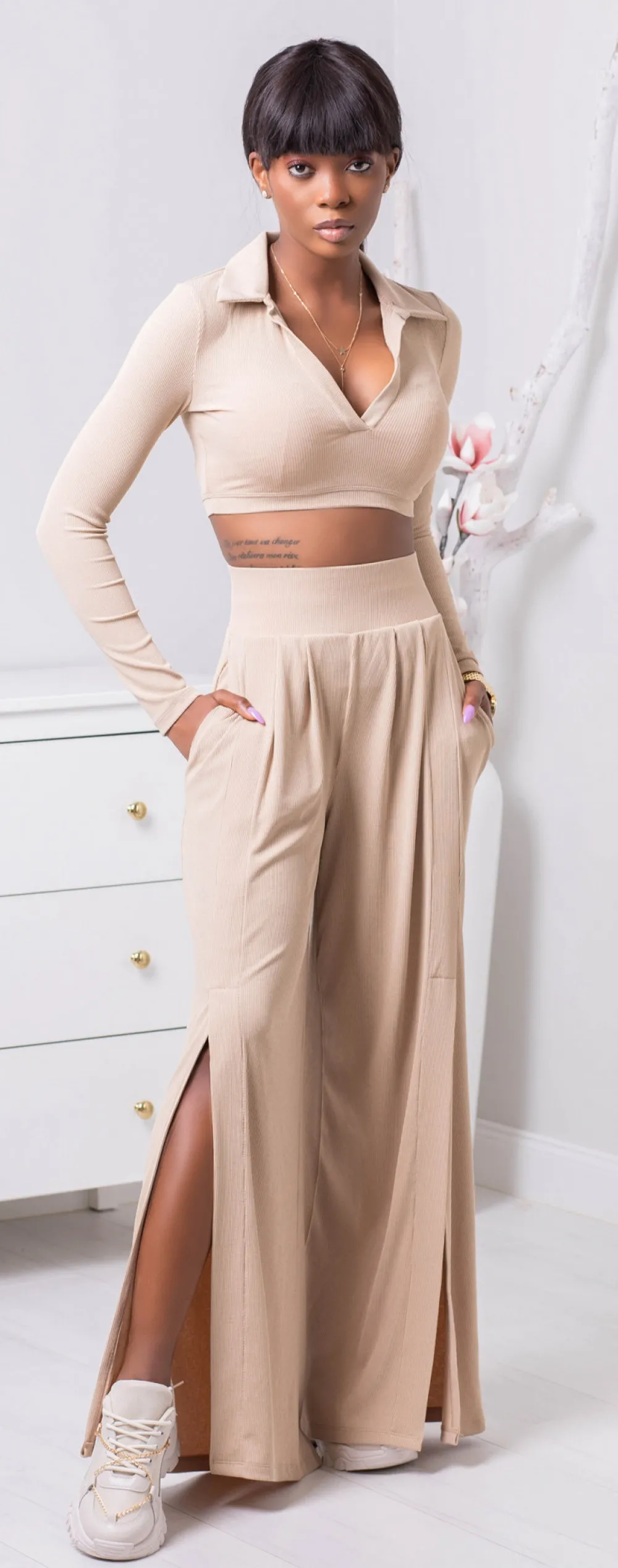 Szerokie spodnie z cienkiego prążka Białe beżowe 127