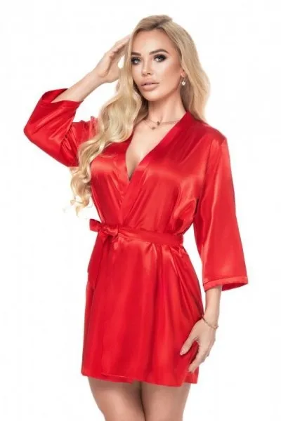 Szlafrok damski z wysokiej klasy wiskozy 94% z dodatkiem elastanu. Krótki, wiązany w pasie, rękaw 3/4. Kolor beż obszyty lamówką w kolorze brązowym,pozostałe kolory – jednolite. Tworzy bardzo dobry komplet z koszulką lub piżamą z kolekcji Babella…