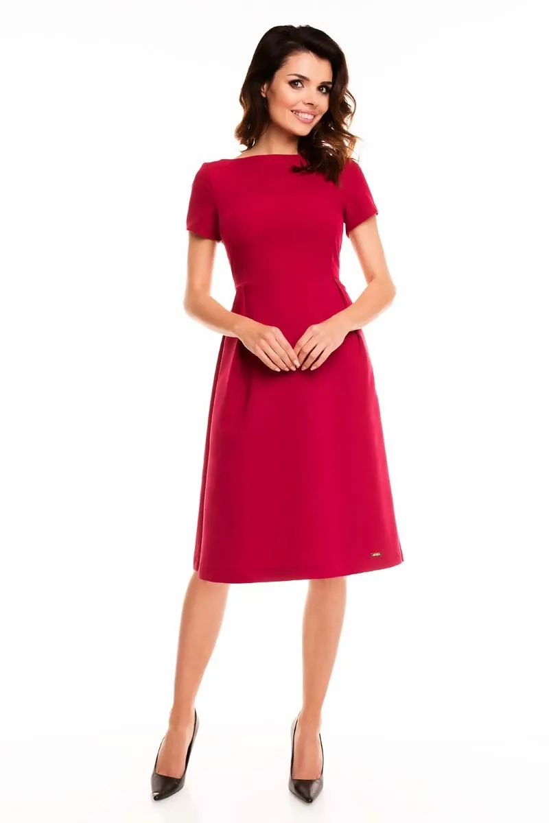 Szykowna Czerwona Sukienka z Krótkim Rękawem i Ozdobnym Paskiem