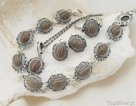 ROBERTA - srebrny komplet z krzemieniem pasiastym