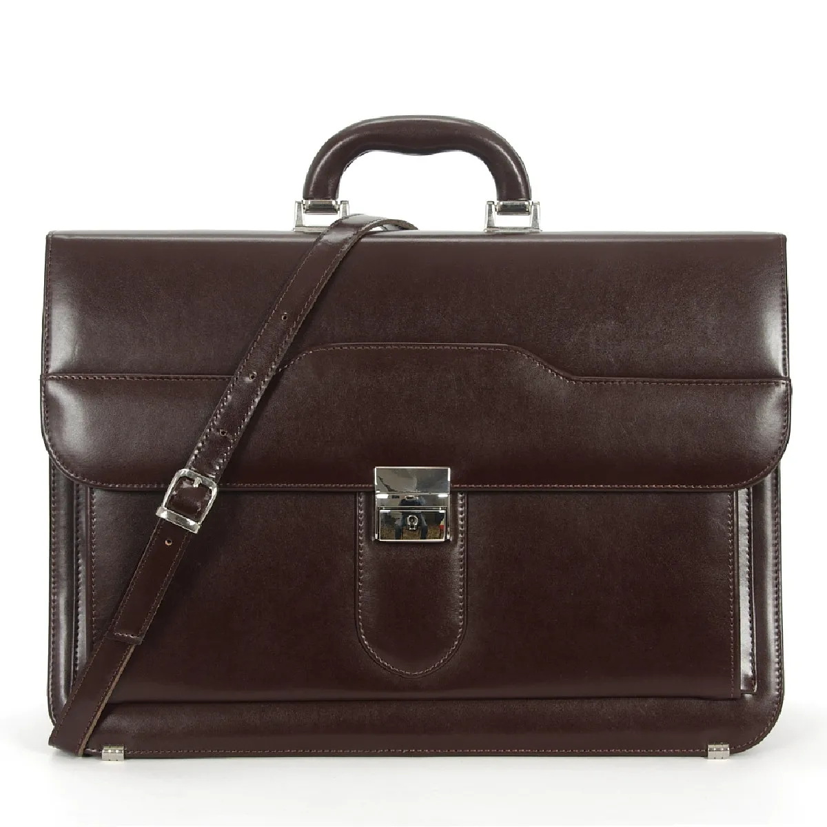 Teczka męska starannie wykonana z naturalnej skóry w kolorze koniakowym. Funkcjonalne wnętrze teczki to dwie obszerne komory oddzielone sztywną przegrodą, która stanowi szeroką kieszeń zamykaną na suwak. Jedna z komór wyposażona jest w dwie kieszonki, 2 schowki na długopisy, 3 zakładki kaskadowe na wizytówki. Na zewnątrz z tyłu teczki mamy do dyspozycji kolejną przegrodę zamykaną suwakiem. Dodatkowo teczka posiada odpinany pasek o regulowanej długości do noszenia na ramieniu. Swoją solidną budowę teczka zawdzięcza perfekcyjnie dopracowanym detalom: W pełni skórzana rączka mocowanie rączki stalowymi nitami zapewnia jej wytrzymałość nawet przy większych obciążeniach 4 stopki zabezpieczające dno przed uszkodzeniami Zamek klapy typu tik-tak z blokadą na kluczyk Mocna skóra oraz precyzyjne wykonanie teczki gwarantują satysfakcję z długiego i bezawaryjnego użytkowania. Wymiary (szerokość x wysokość bez rączki x głębokość): 43 x 32 x do 15 cm.