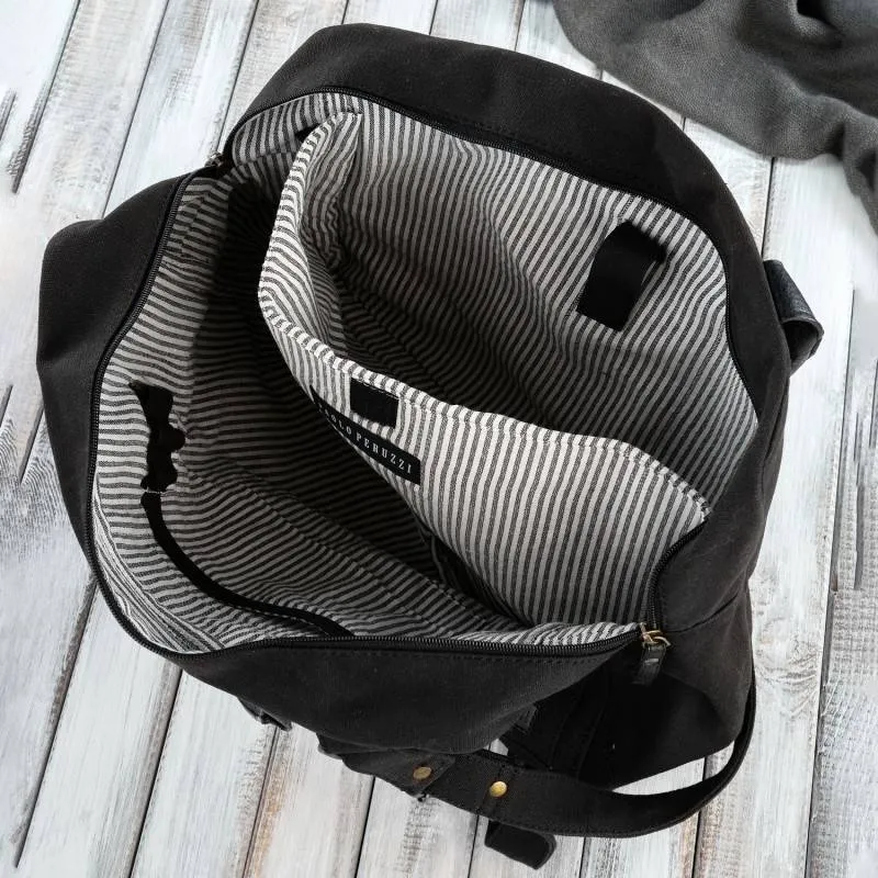Torba na ramię E–09 została zaprojektowana z myślą o mężczyznach ceniących praktyczny charakter dodatków galanteryjnych. Wykonana z połączenia trwałych materiałów – bawełny canvas oraz skóry wegańskiej 100%, wyróżnia się zastosowaniem mocnych nici i designerskiej, bawełnianej podszewki w paski. Torba jest zamykana klapą na magnetyczne napy. W komorze głównej na suwak umieszczono kieszeń dedykowaną na laptopa (15.6”) lub tablet oraz dwie kieszonki wsuwki naszywane na podszewce. Poręczna wielkość torby zapewnia wystarczającą ilość miejsca do przechowywania przedmiotów codziennego użytku. Charakterystyka Model: E–09 Producent: Paolo Peruzzi Materiał: bawełniany canvas + skóra wegańska Uchwyt: uchwyt do ręki, pasek na ramię Zapięcie: zamek błyskawiczny, napy magnetyczne Liczba komór: 1 Liczba kieszeni: 3 Przegroda na laptopa: tak Kieszeń na telefon: tak
