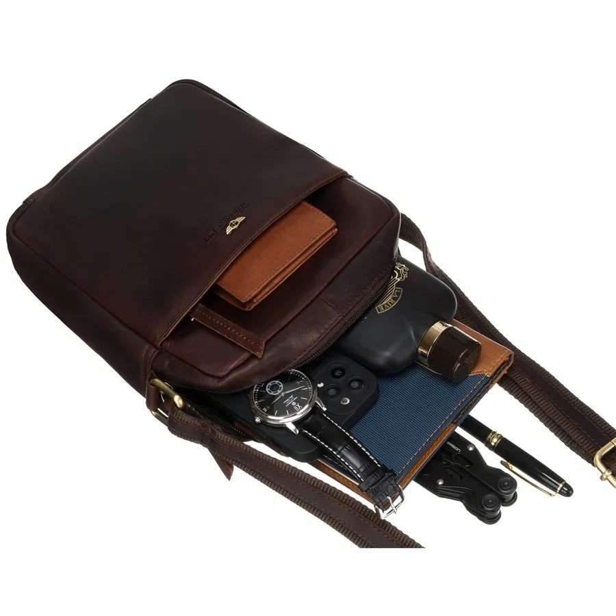 Kompaktowa torba męska ze skóry naturalnej. Praktyczna listonoszka na suwak, jednokomorowa z wygodnymi kieszonkami do organizacji zawartości. Torba wyposażona w regulowany pasek na ramię.