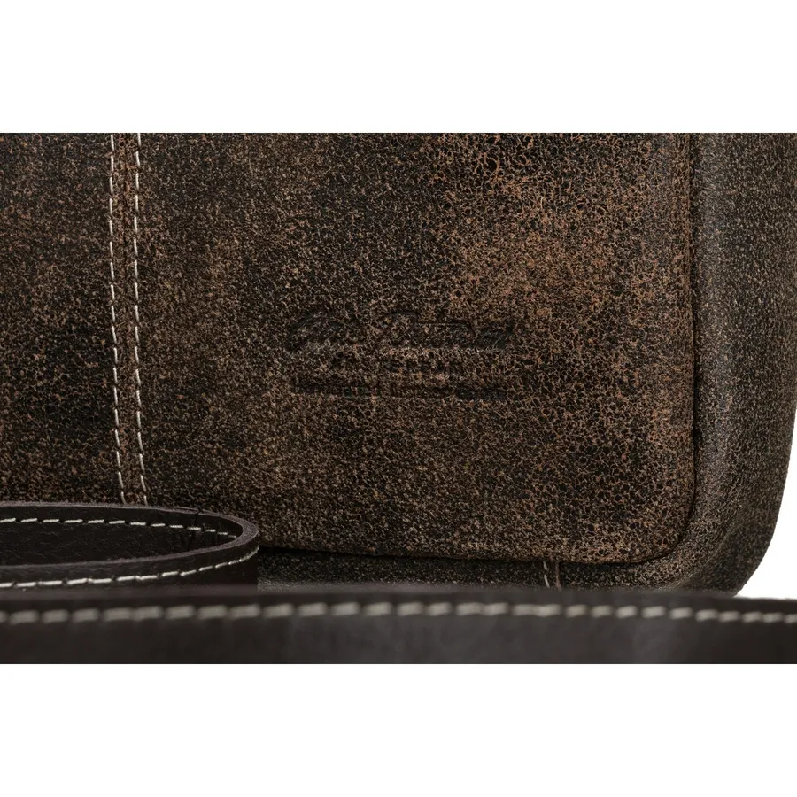 Odszyta ze skóry naturalnej w brązowym kolorze. Modna torba z okuciami w kolorze starego złota. Wyposażona w wiele kieszeni; zmieści laptopa. Dzięki regulowanemu paskowi, torba będzie idealnie dopasowana niezależnie od wzrostu i sylwetki.