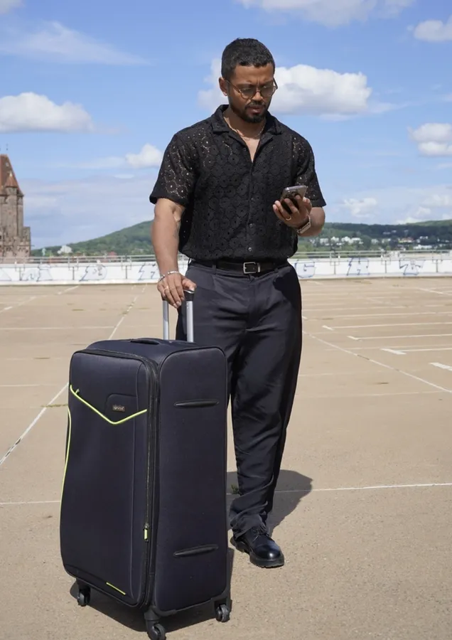 Średnia walizka miękka M Solier STL1651 czarno-zielona