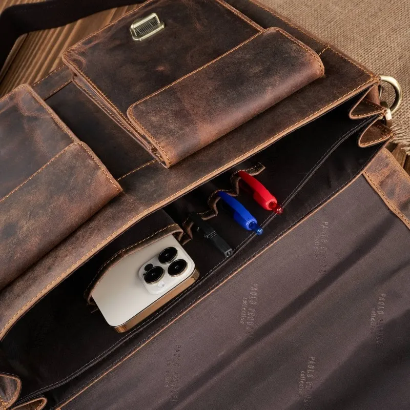 Z przyjemnością prezentujemy Państwu nowy model skórzanej, męskiej torby na ramię w stylu vintage. Model T-100-HBR to duża i pojemna męska torba na ramię wykonana z wysokiej jakości przecieranej skóry vintage. Skóra hunter, z której uszyta została torba idealnie nadaje się na produkty przeznaczone do intensywnego, codziennego użytkowania. Z czasem, dzięki swojej specyficznej strukturze skóra patynuje się, nabierając indywidualnego, naturalnego postarzanego wyglądu. Torba wykonana w fasonie torby/aktówki, świetnie sprawdzi się jako torba biznesowa na mniej formalne spotkania służbowe jak i również będzie świetnym uzupełnieniem stylizacji do pracy, na uczelnię czy po prostu do szkoły. ✅ Torba na ramię posiada przemyślany rozkład wnętrza i wiele kieszeni do przechowywania, przez co idealnie sprawdzi się jako torba męska na co dzień. ✅Styl, jakość i organizacja trzy słowa opisujące nasz nowy model T-100-HBR!