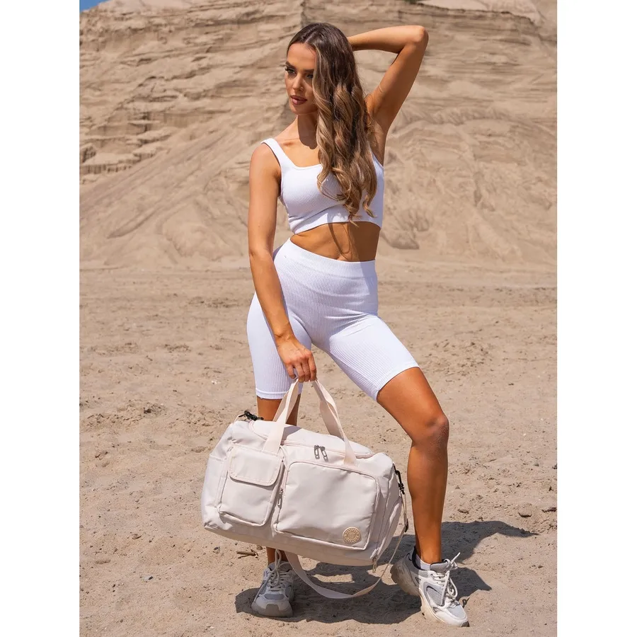 Błękitna torba sportowa wykonana z poliestru. Posiada aż 2 praktyczne komory, w tym osobną na buty. Wyposażona w wygodny, regulowany pasek i wygodny uchwyt na walizkę dla większego komfortu podróży.