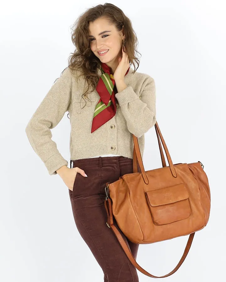 Shopperka skórzana MARCO MAZZINI brąz camel v246a