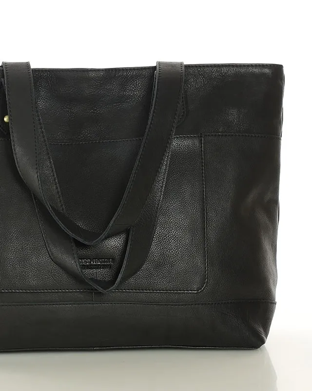 Torebka skórzana shopper damski z przegródkami - MARCO MAZZINI czarna