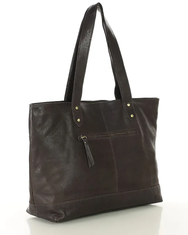 Torebka skórzana shopper damski z przegródkami - MARCO MAZZINI brąz czekolada