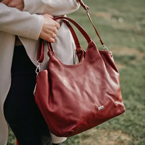 Elegancka torebka polskiej marki SHE wykonana z najwyższej jakości skóry naturalnej. Idealna na codzienne wyjście do pracy, na spacer, czy kolację. Wnętrze kryje 2 komory oddzielone przegrodą na zamek, dodatkowo posiada kieszeń zamykaną na zamek. Wymiary: Wysokość – 29 cmSzerokość – 40 cmGłębokość – 7 cmDługość rączek – 38 cmDługość paska – max. 105 cm