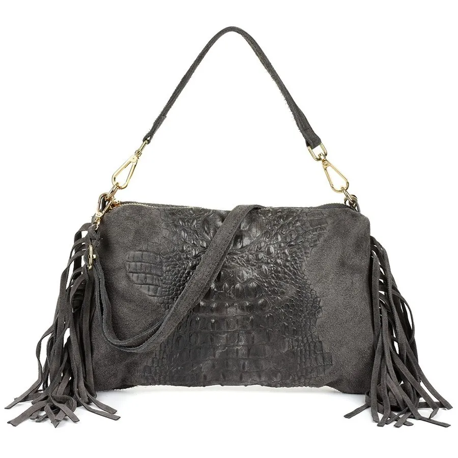 Listonoszka skórzana boho VERA PELLE Z24 szara