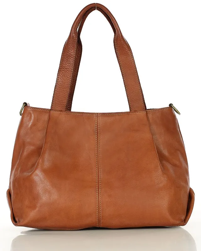 Torebka kuferek skórzana na ramię z miękkiej skóry MARCO MAZZZINI brązowa camel