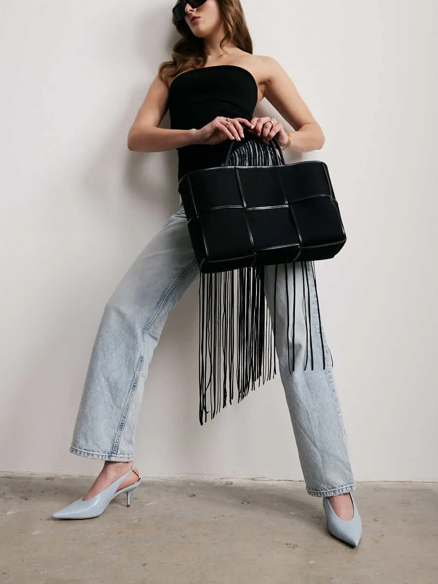 Torebka damska wykonana z zamszu i skóry naturalnej z regulowanym paskiem.
