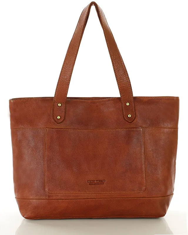 Torebka skórzana shopper damski z przegródkami - MARCO MAZZINI camelowy brąz