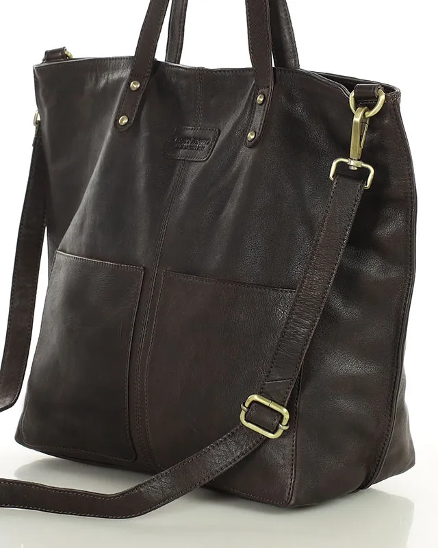 Torebka skórzana brązowa czekoladowa duża typu shopper - MARCO MAZZINI