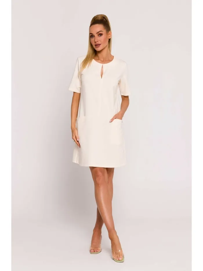 299,00 złTrapezowa sukienka mini z kieszonkami – śmietankowa – Rozmiar: XXL