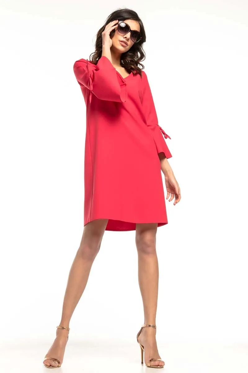 Trapezowa sukienka z rozkloszowanym rękawem – malinowa – Rozmiar: M