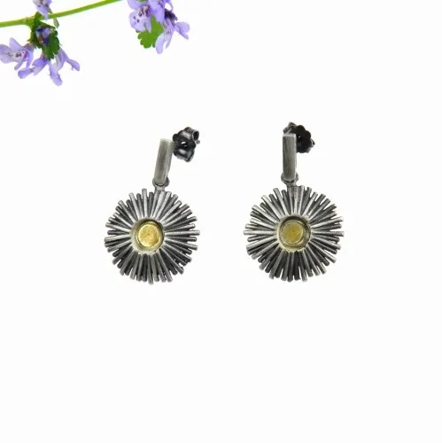 Cynie - kolczyki srebrne szare na ruchomych sztyftach