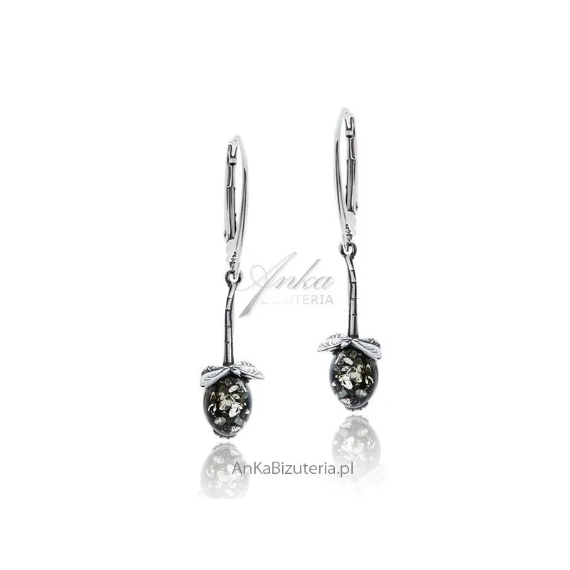 Kolczyki srebrne z zielonym bursztynem - ważki