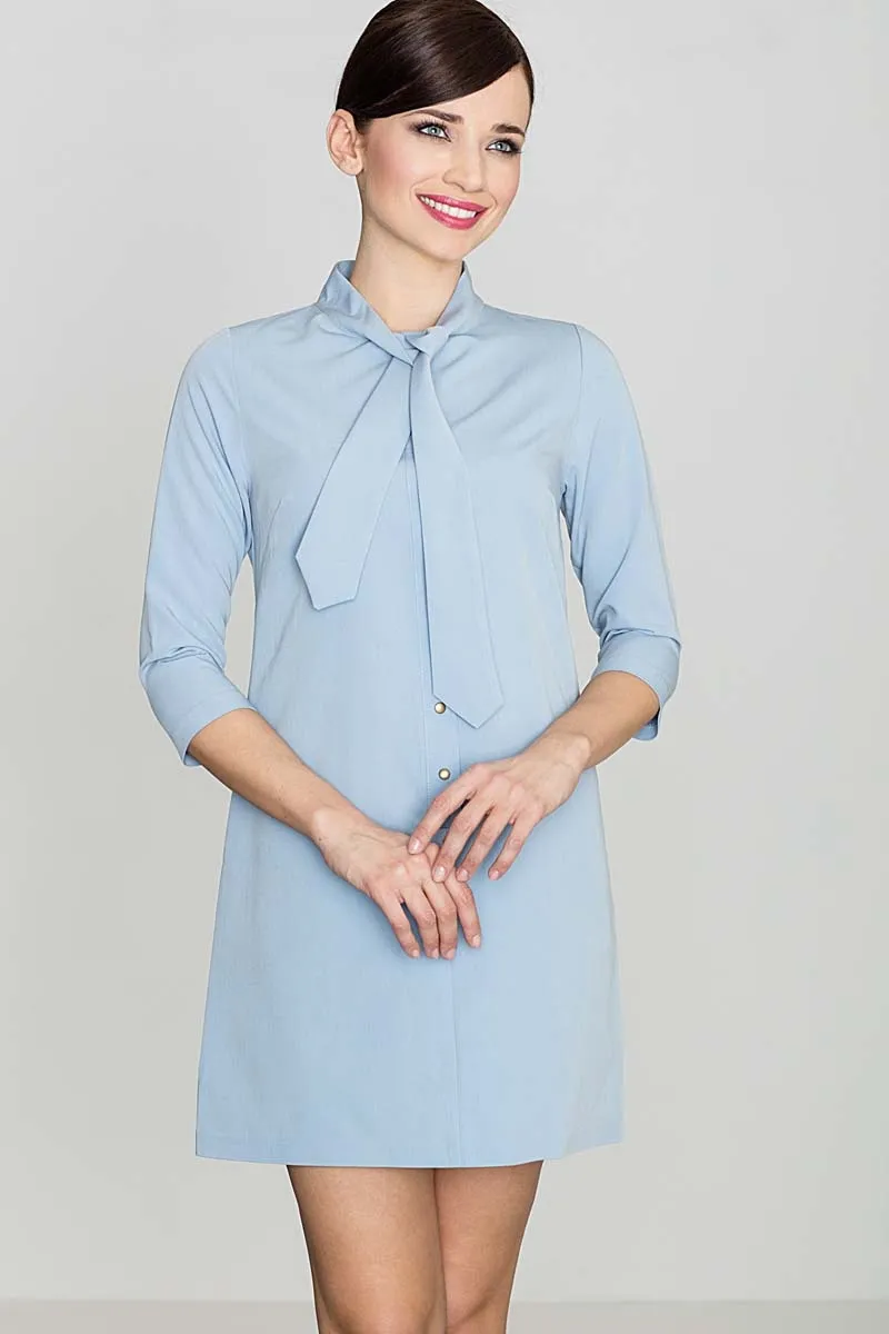 Uniwersalna Niebieska Koszulowa Sukienka z Wiązaną pod Szyją Szarfą