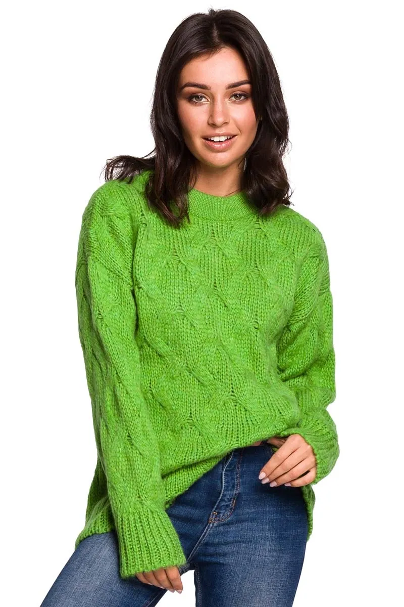 Zielony Ciepły Sweter z Półgolfem w Warkocze