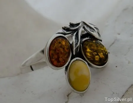 TĘCZA - srebrny pierścionek z bursztynów