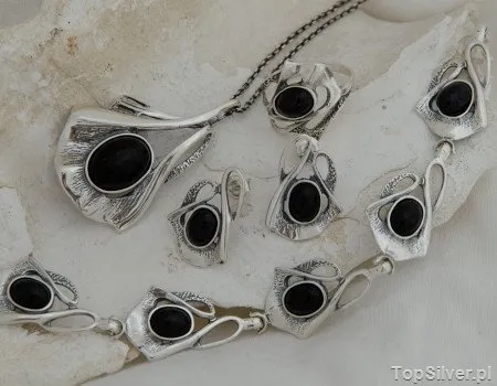 Oferuje państwu niezwykły, stylowy komplet srebrnej biżuterii, dla którego inspiracją była oryginalna biżuteria z okresu międzywojennego. W formie przywodzącej na myśl kształt klepsydry zamkniete zostały misterne ażurowe zdobienia a w przewęzeniu bizuterii zakuty został fasetkowany oliwin. W tej biżuterii każda kobieta poczuje się wyjątkowo – przekonaj się sama… Srebro oksydowane. Wymiar motywu zdobniczego 2,9 x 1,1cm. (wymiar broszki) Długość kolczyków z zapięciem 4,3cm. Długość wisiorka z zwieszką 4cm. Wymiar kamienia 6 x 8cm. Srebro próby 925. W naszej ofercie znajdą Państwo taki sam model biżuterii z innym kamieniem! Zachecam do zapoznania się z naszą ofertą..