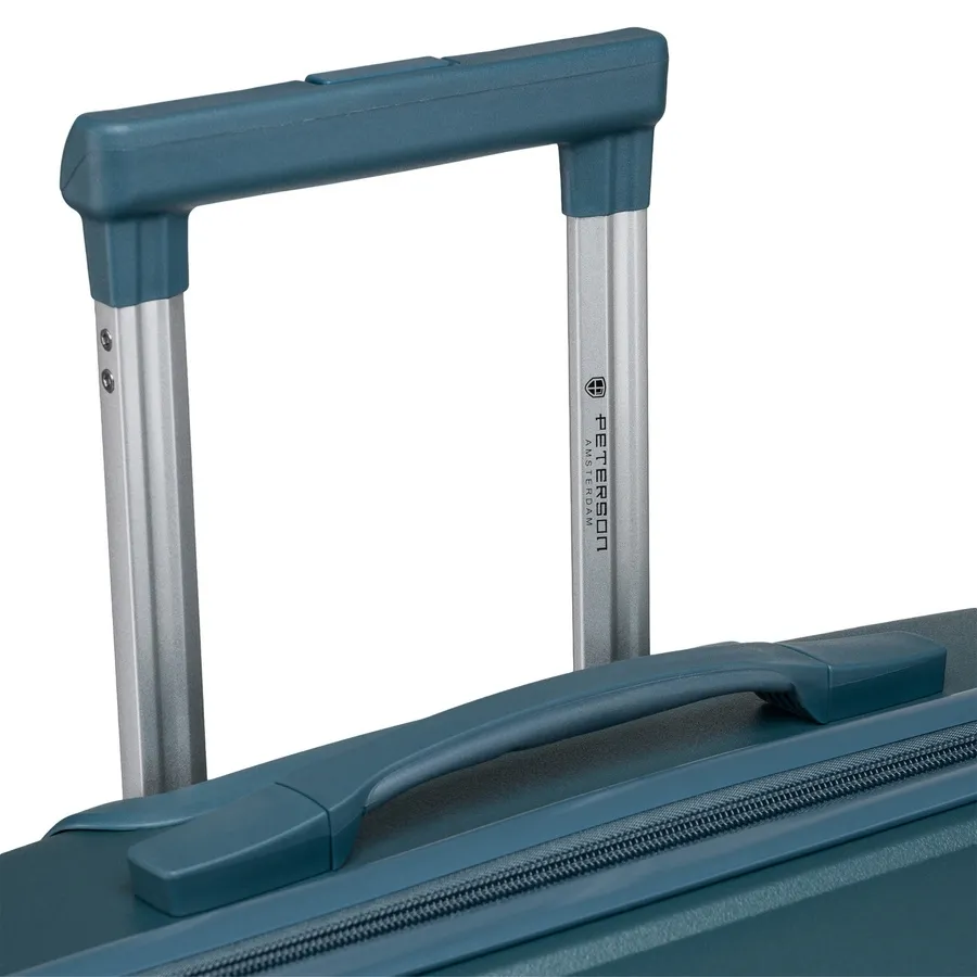 Kompaktowa walizka Peterson, wykonana z trwałego materiału ABS. Wyposażona w cztery obrotowe kółka i teleskopowy uchwyt, co zapewnia wygodne prowadzenie. Idealna na bagaż podręczny!