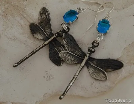 Symbolem secesji w jubilerstwie obok abstrakcji roślinnych, falistych lini, ornamentów są także owady a przede wszystkim ważki. Przedstawiamy Państwu srebrne kolczyki w kształcie ważek. Wykonane w całości ze szlachetnego kruszcu, a wykończone starą – nawiązaującą do epoki techniką włókninowania. Daje to efekt satynowego przetarcie i w ten sposób gwarantuje niepowtarzalność. O tym jak bardzo popularne i modne to kształty, niech świadczą stylizacje w których pojawia się Kim Kardashian czy Jennifer Lopez (z ang. dragonfly earrings) kolczyki dość często stanowią wisienke na torcie stylizacji tych gwiazd. Kolczyki posiadają zapiecie w postaci bigli. Wymiary: szerokość to 3,5cm, długość z biglem to 4,6cm Srebro próby 925 W naszej ofercie znajdziesz ponad 100 modeli ważek w różnym kształcie i z różnymi kamieniami. Cieszące się największą popularnością oprócz tych prezentowanych są ważki z ametystem i kolczyki ważki z szafirem.