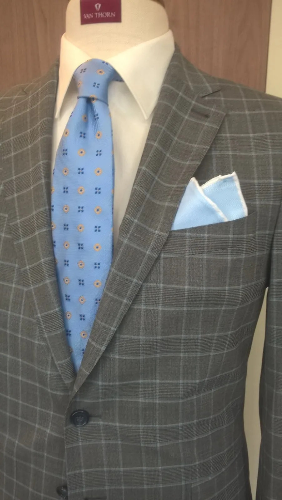 Elegancki błękitny krawat jedwabny Van Thorn w niebieski i żółty wzór