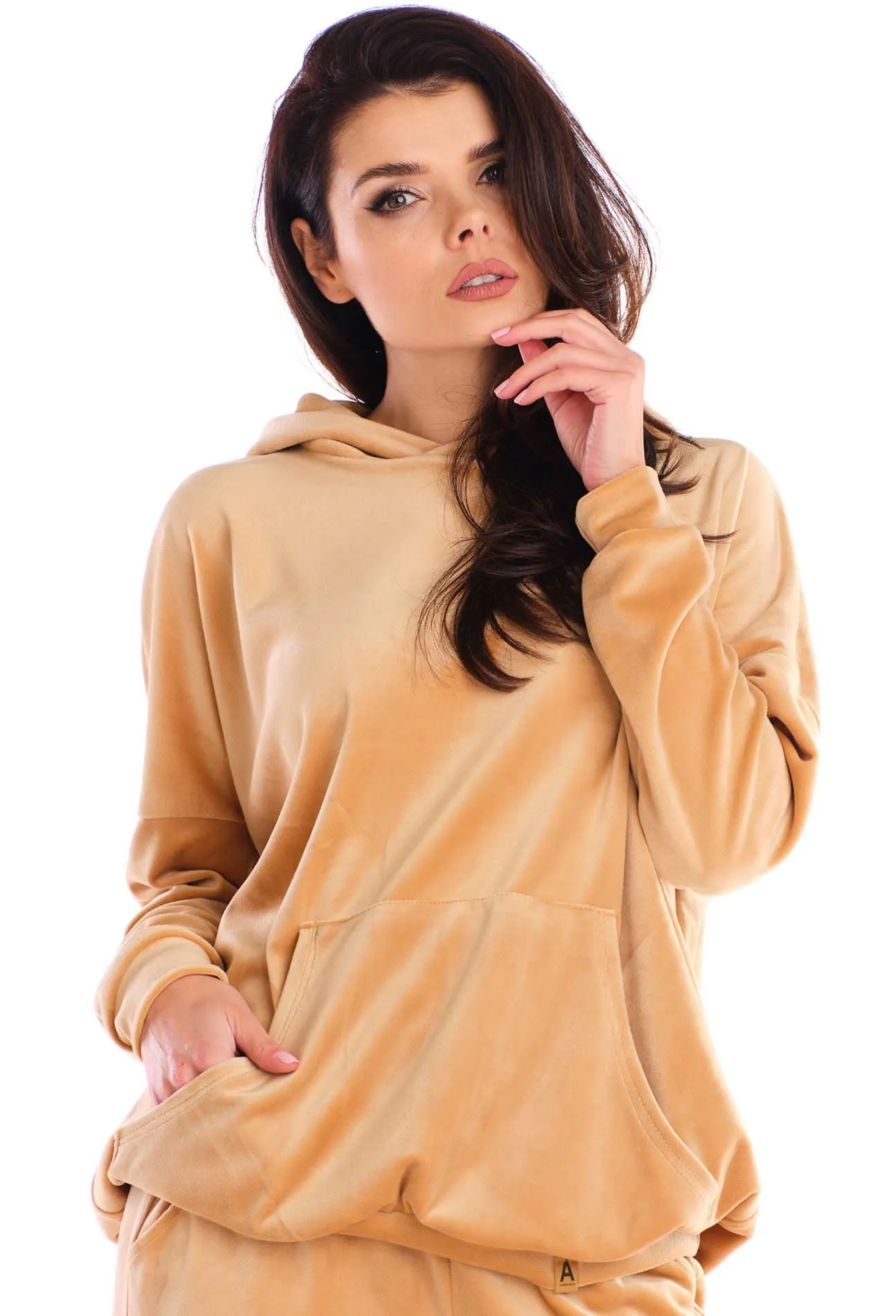 Welurowa Bluza Kangurka z Kapturem – Pomarańczowa