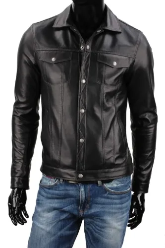 KTM450 - Klasyczna katana skórzana męska w czarnym kolorze DORJAN