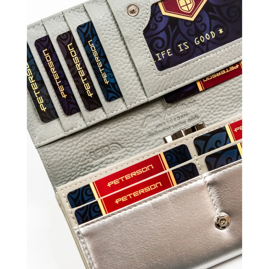 Wielokolorowy, duży portfel damski ze skóry ekologicznej i naturalnej zamykany zatrzaskiem PTN PX27-1-NPK Peterson
