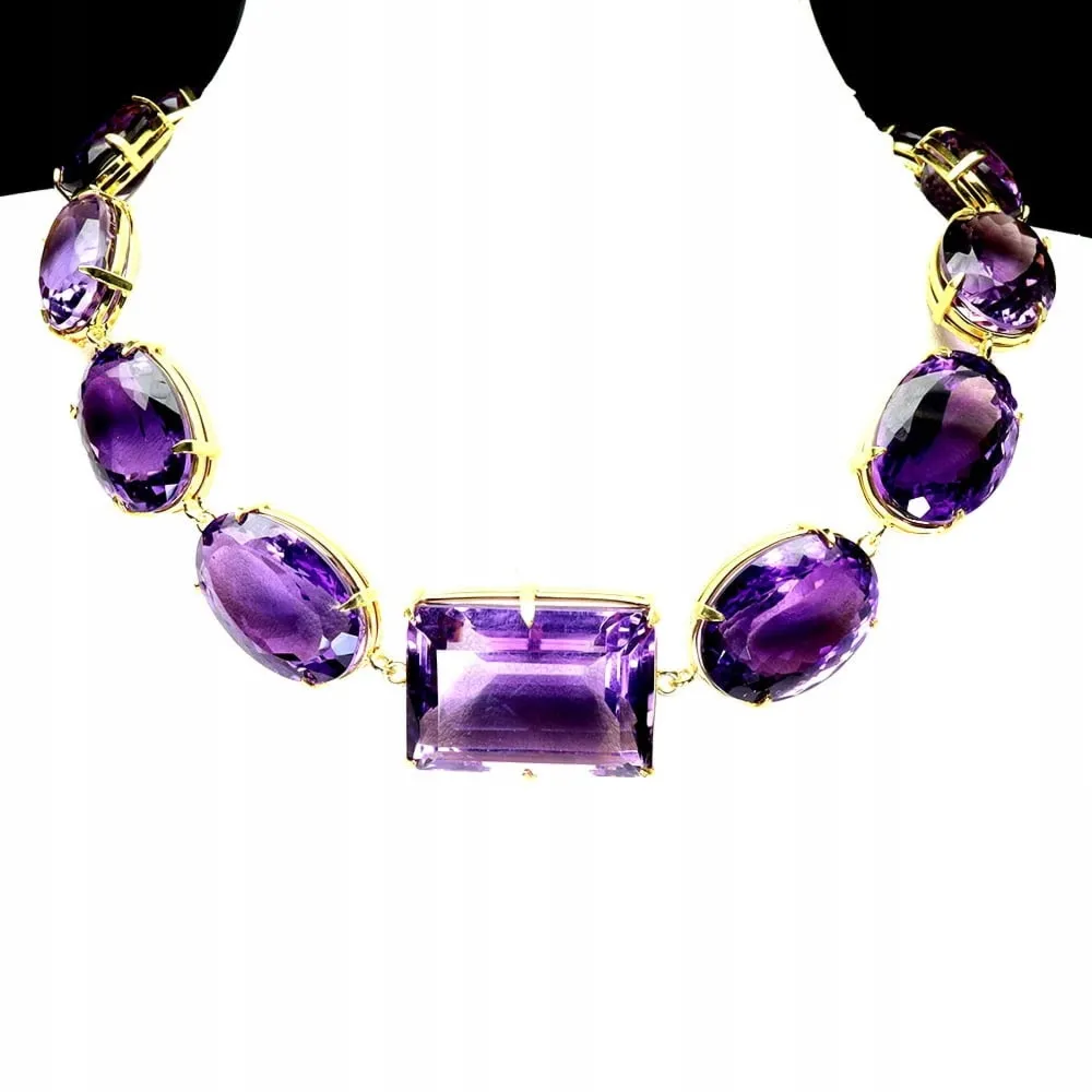 Srebrny zjawiskowy naszyjnik naturalne okazałe ametysty 925 certyfikat