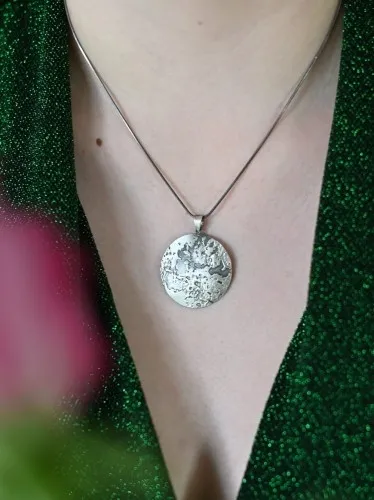 Efektowny wisiorek srebrny z oprawioną druzą powlekaną tlenkiem tytanu. Kamień ten wydobywa pięknie mieniące się refleksy. Tutaj w kolorze niebiesko-złotym. Wysokość zawieszki: 2,5 cm, szerokość: 1,3 cm. Waga: 5,0 gr. Do kompletu polecamy również kolczyki. Zawieszka sprzedawana bez łańcuszka.