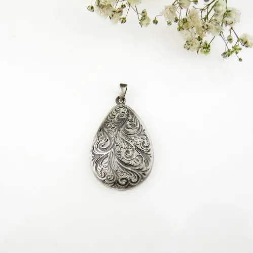 Piękny wisior wykonany ze srebra przedstawiający trzy owoce wraz z listkami, otoczone ramką. Wykończony oksydą i wypolerowany.Owoce pomalowane złotem. Długość wisiorka 5,8 cm, szerokość 3,2 cm. Waga: 10 gr. Zawieszka sprzedawana bez łańcuszka. Nr katalogowy :KW25W3C