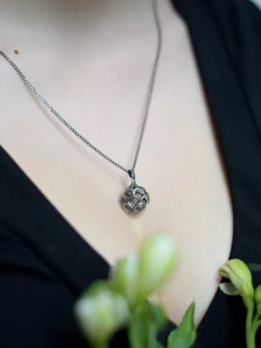 Wisiorek srebrny oksydowany - Ażurowa kula