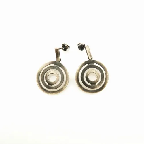 Subtelny wisiorek srebrny próby 925, przedstawiający trzy połączone ze sobą kółeczka. Wisiorek wykończony oksydą w kolorze grafitowym.Średnica wisiorka 3 cm. Długość: 4 cm. Waga:3,6 gr.Do kompletu polecamy również kolczyki. Nr katalogowy : S2WC