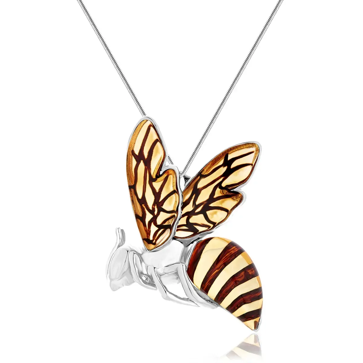 Zawieszka srebrna szerszeń z bursztynem hornet