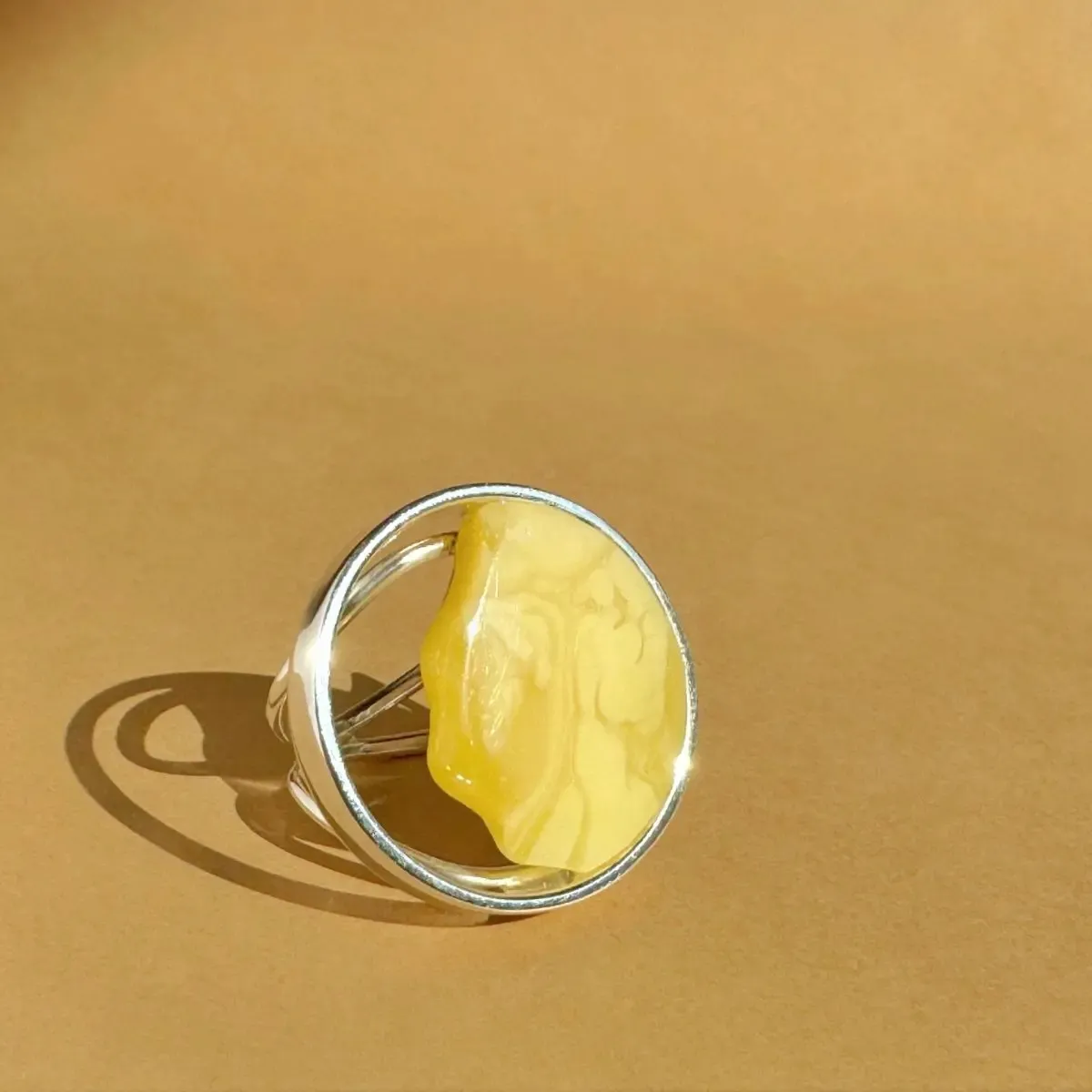 Pierścionek srebrny rozmiar regulowany z mlecznym bursztynem no 13