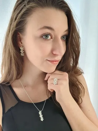 Wisiorek Srebrny z Trzema Kwiatuszkami Jasnymi – Subtell III – Artystyczna Biżuteria Ręcznie Robiona Wejdź w świat subtelnej elegancji i romantyzmu z naszym „Wisiorkiem Srebrnym z Trzema Kwiatuszkami Jasnymi – Subtell III”. Ta delikatna zawieszka, misternie wykonana ze srebra, to połączenie trzech drobnych kwiatuszków, które razem tworzą harmonijną i urzekającą kompozycję. Każdy z trzech kwiatuszków skrywa w swoim sercu lśniącą białą cyrkonię, która dodaje blasku i podkreśla piękno tej wyjątkowej biżuterii. Lekkość i wdzięk wisiorka sprawiają, że jest on idealnym dodatkiem zarówno na co dzień, jak i na specjalne okazje.