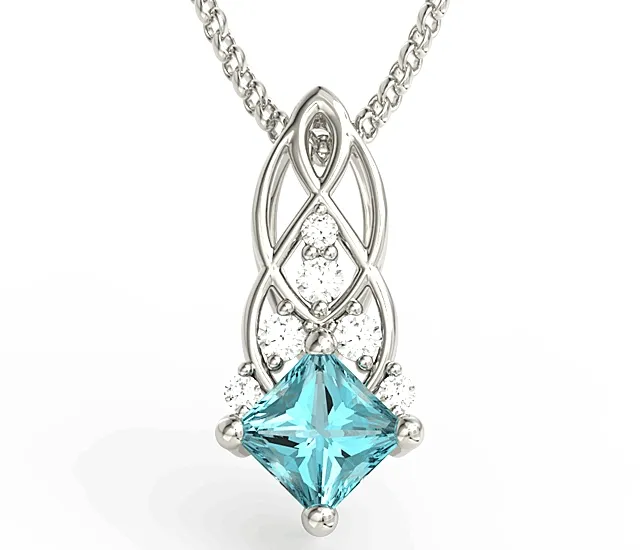 Wisiorek z białego złota z topazem Swarovski Ice Blue i brylantami BPW-86B