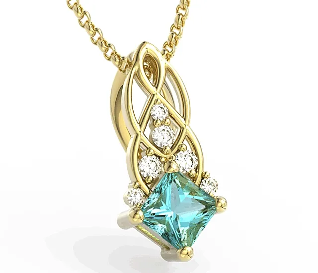 Wisiorek z żółtego złota z topazem Swarovski Ice Blue i brylantami BPW-86Z