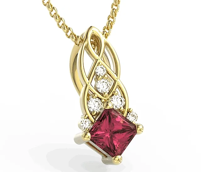 Wisiorek z żółtego złota z topazem Swarovski Red i brylantami BPW-86Z
