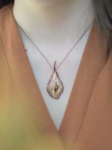 Subtelna zawieszka wykonana ze srebra.Zawieszka została pozłocona.Kolor- złoty. Długość 1,8 cm. Szerokość 0,9 mm. Waga: 1,1 gr. Do zawieszki polecamy również kolczyki do kompletu. Nr katalogowy :KW42WZ