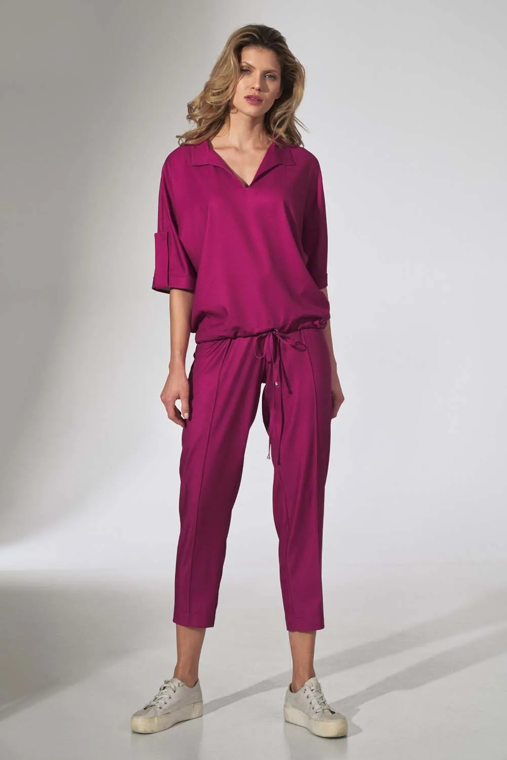 Materiał: wiskoza 97% elastan 3%.Dostępne rozmiary: S (36), M (38), L (40), XL (42).Warianty kolorystyczne: beżowy, fuksja, miętowy, pomarańczowy.