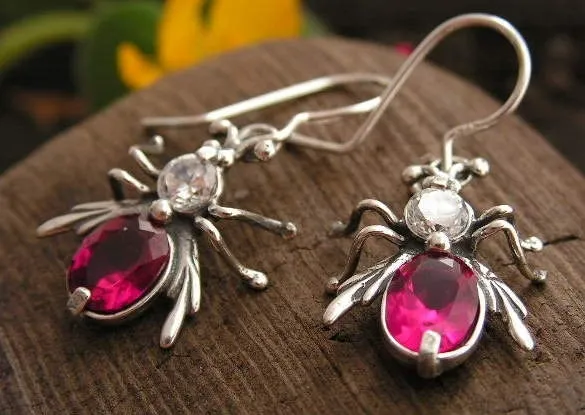 Niezwykle urokliwe i oryginalne kolczyki przedstawiające filigranowe muchy, w których odwłok wkomponowano malutki kryształ Swarovskiego oraz 1karatowy różowy kryształ Swarovskiego. Kolczyki pięknie się prezentują! Szerokość kolczyków 1,4cm. Długość muchy 1,7cm. Wymiar kamienia 6 X 8mm. Długość z zapięciem to 3,5cm SREBRO PRÓBY 925. W naszej ofercie znajdziesz także wsiorek. Kupując w komplecie oszczędzasz.